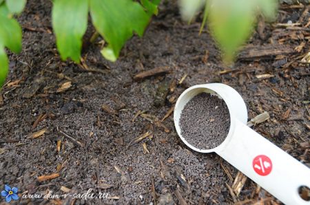 I det tidlige forår vil mineralforbindelser, der er spredt omkring dem, være en god næring for blomster. De absorberes i jorden sammen med smeltende snevand og når hurtigt rødderne, der foder hele bushen indefra. Efter sommerens begyndelse skal sommerboere fremstille 2 rodgødning, som simpelthen er spredt under buskene og derefter vandes rigeligt.