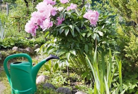 Voksende planter pryder grunden med lyse blomster. Efter 3 år har hver busk 10-15 stængler. Fra dette øjeblik har pioner brug for konstant mineralopladning. I hele vækstsæsonen skal de udføres mindst tre gange. Her betyder overholdelse af doseringen og tidspunktet for påfyldning af blomster. Overfodring af dem er ikke det værd såvel som underfødning.