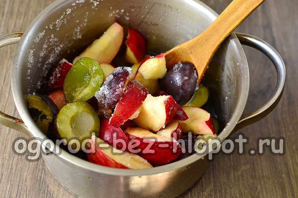 Æbler og blommer er meget kombinerede, komplementerer hinanden og giver en helt ny, original smag. Saftige blommer giver syltetøj til syltetøj, og æbler fylder produktet med en fremragende sød, frugtagtig aroma.