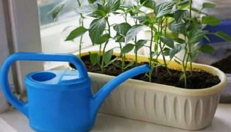 Det er vigtigt at vide, at frøene, der er plantet i jorden, slet ikke vandes. Det er nødvendigt at løsne og fugtige jorden på forhånd, i de huller, hvorfra frø af peber eller tomater plantes senere. Fra oven drysses alt med et tyndt lag tør jord og lader det være alene (på et godt oplyst varmt sted), indtil de første spirer vises.