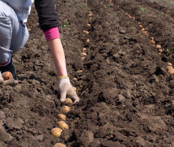 Ordningen med at lægge plantemateriale i jorden ved Luck-kartofflen er standard - mindst 20 cm mellem buske og 30-40 cm mellem rækkerne. Hvis kartofler er hakket, bør huller eller furer ikke være dybere end 6 cm, hvis hele kartofler ikke bør være dybere end 10 cm.