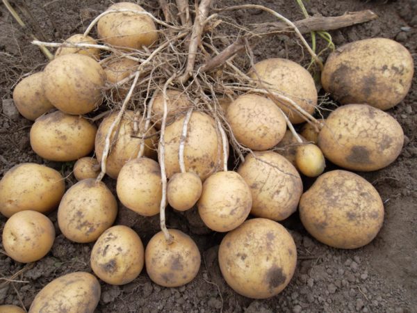 Den første afgrøde kan opnås allerede på den 45. dag efter spiringen. Da knolde tolererer mekanisk skade, kan du let grave busken op og vælge store kartofler og forlænge sortsudbyttet i flere måneder. Med forbehold for reglerne for dyrkning og pleje af plantagerne fra hver busk, kan du få mindst 1 kg produkter af høj kvalitet.