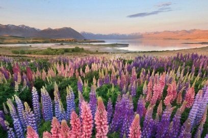 - Langtidspleje er ikke påkrævet for lupin ved Tikalo-søen i New Zealand, og ingen landing er nødvendig. Her vokser de selvsående og på billedet opnås meget smukke landskaber.